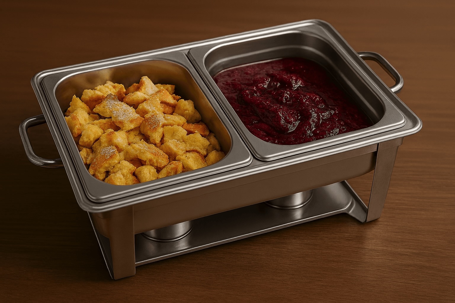 Unser klassischer Kaiserschmarrn wird goldbraun gebacken, locker gezupft und mit Staubzucker bestreut – ein echtes Highlight der österreichischen Mehlspeisküche. Dazu servieren wir hausgemachten Zwetschkenröster mit fruchtig-süßer Note. Dieses warme Dessert ist ideal als süßer Abschluss bei Business Lunches, Konferenzen oder festlichen Events – portioniert im Chafing Dish und sofort servierbereit.