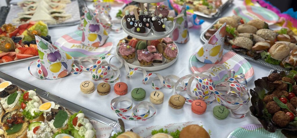 Wir adaptieren viele unserer Business-Catering-Produkte speziell für Kindergeburtstage – mit kinderfreundlichem Party-Design, auf Wunsch auch thematisiert (z. B. Farben, Motto) oder allergenfrei.